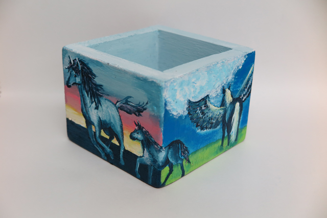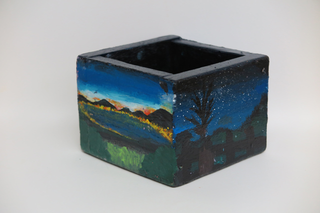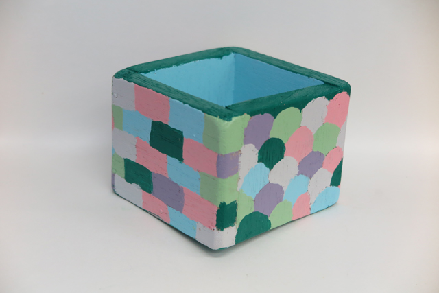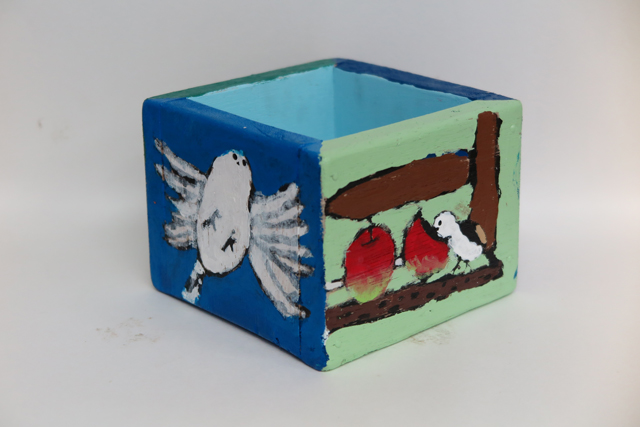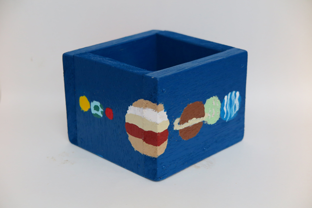 箱を作る課題のたびに、子ども達の頭の柔らかさ、発想の豊かさに驚かされます。カメラに見立てた箱を覗けば満開の桜が見えたり、箱から密があふれてきたり…物語を紐解いているようです。