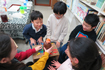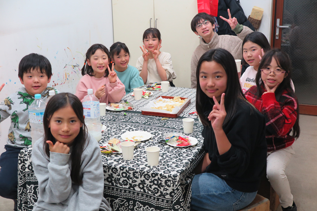 アトリエのカリキュラムの中で一番人気は、何といっても二学期最後の「ロウソク作り」。クリスマス会を兼ねたこの日は、レースキャンドルができるまで、おしゃべりし放題!ポテトチップス食べ放題!ジュース飲み放題!一年で一番子ども達の笑顔がはじける日です。