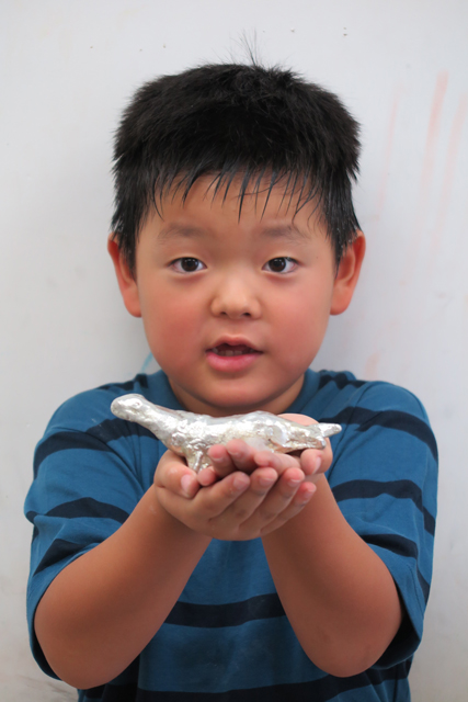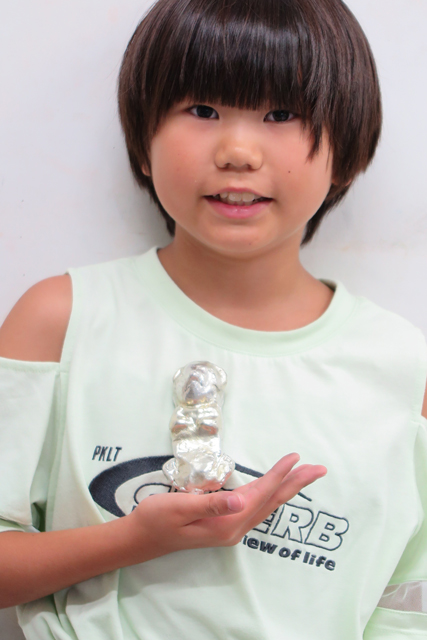 錫でペーパーウェイトを作りました。鋳込みの時に沸騰したり、末端まで流れなかったりとありましたが、何とかみんな無事に作品になりました。暑い夏がひときわ暑く感じられた夏休み工作教室でした。